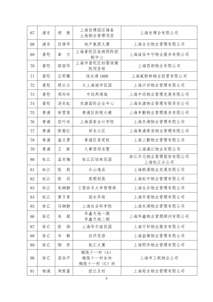 关于表彰2020年度上海市物业管理优秀项目经理、服务能手的通知